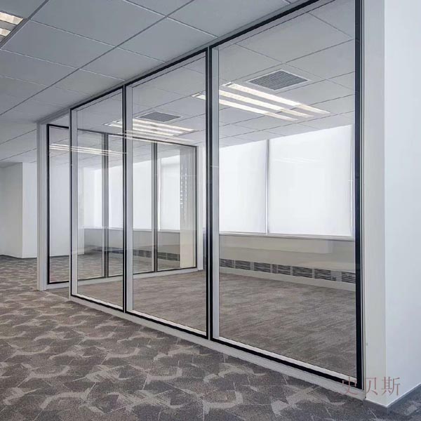 吴川明框玻璃隔墙:最高隔音效果为50分贝。无论是单玻或者双玻隔墙,定制的不同宽度的边框能够更好的匹配电动百叶窗。